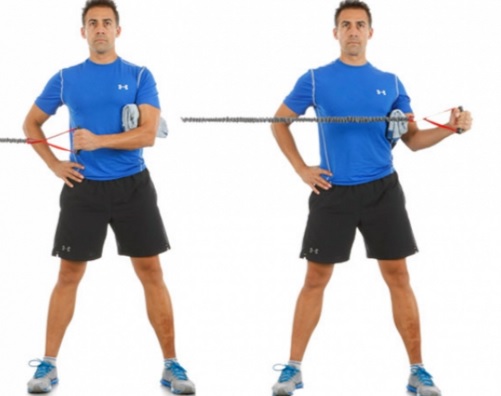 En el caso de los rotadores internos la goma vendría por el mismo lado del brazo.