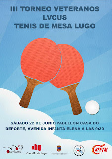 Tercer torneo Veteranos Lvcus, que organiza el Club Deportivo Dez Portas T.M. Lugo. El objetivo de este es fomentar el deporte en Veteranos, haciendo hincapié en el Tenis de Mesa. El torneo tendrá lugar el día 22 de junio, a partir de las 09:30, en el Polideportivo Municipal Casa do Deporte, localizado en la Avenida Duquesa de Lugo s/n, Lugo.